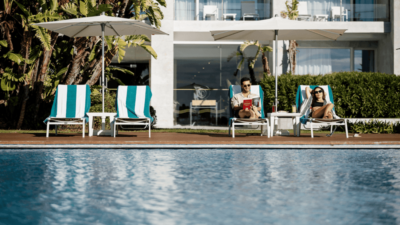 Com uma decoração elegante, os quartos Deluxe são quartos entre os 25 e 49 m2 ideais para estadias confortáveis. Todos os quartos Deluxe dispõe ainda de varanda onde pode desfrutar da vista e deixar-se inspirar pelo mar.